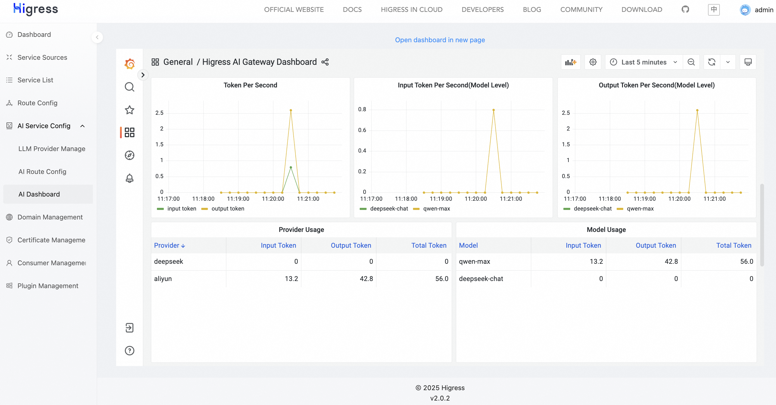 Section titled “Observability”In the AI Dashboard, you can observe AI requests. Observability metrics include the number of input/output tokens per second, token usage by each provider/model, etc.