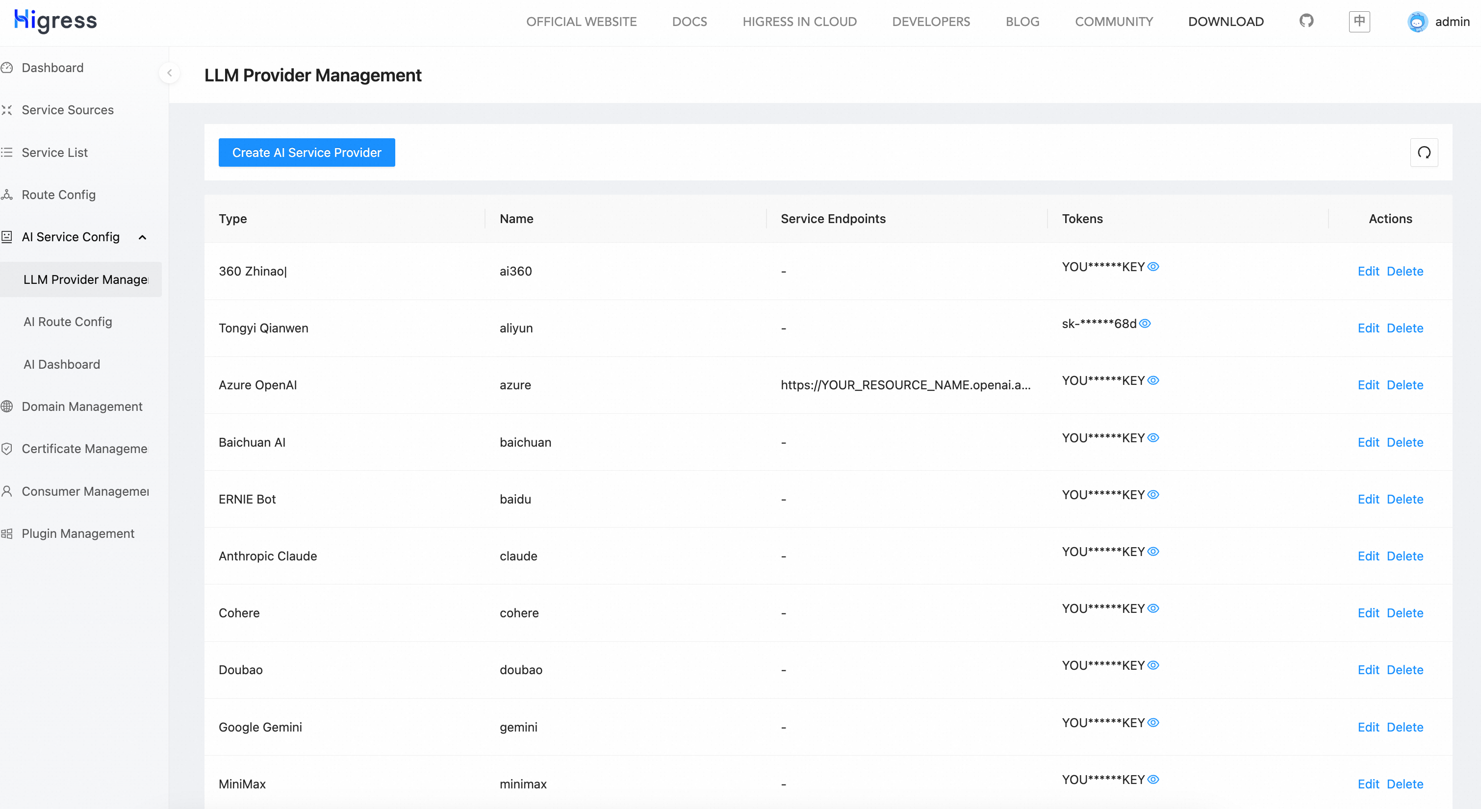 | Configure more models | Add more provider API-KEYs in the AI Service Provider section of the console |